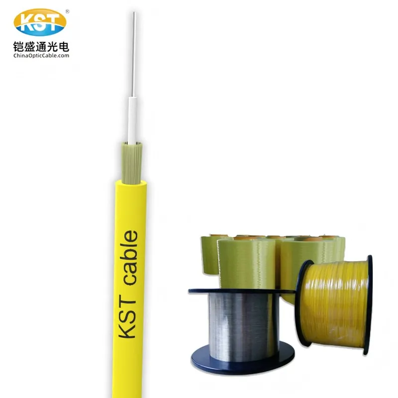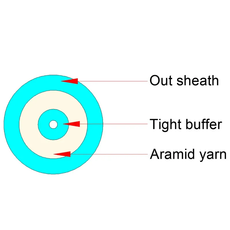 Single-core optical cable uses a single Φ900μm or Φ600μm tight-jacketed optical fiber as the optical transmission medium, covered with a layer of aramong as the force strengthening unit, and extruded with a layer of polyvinyl chloride (PVC) 、low smoke halogen-free material (LSZH, low smoke, halogen-free, flame retardant) and Polyurethane(TPU)sheath.