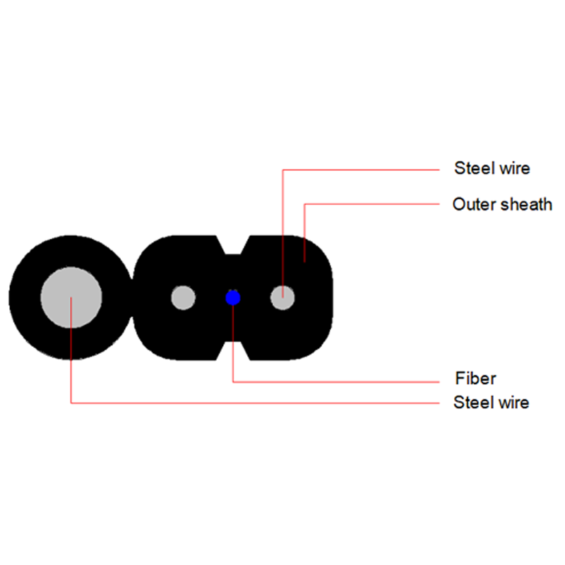Optical fibers are positioned in the cable center,the optical cable consists of four metal or non-metal reinforcing parts, with an additional steel wire serving as a self-supporting strength component. then the cable is completed with flameproof black (or custom) color LSZH outer sheath to be a integrated product.