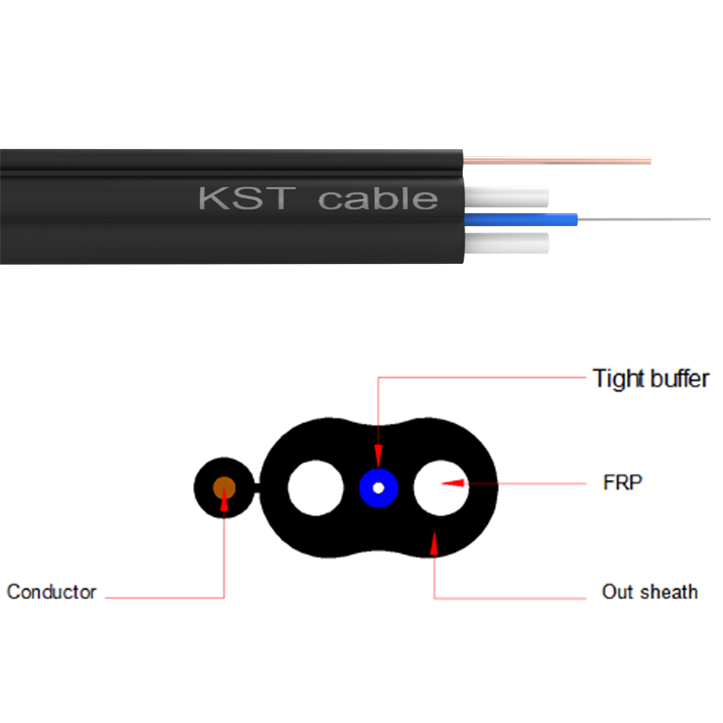 The optical fiber is placed in the center of the cable, which is composed of four metal or non-metal reinforcing components, in addition to a copper wire serving as its own supporting strength component.